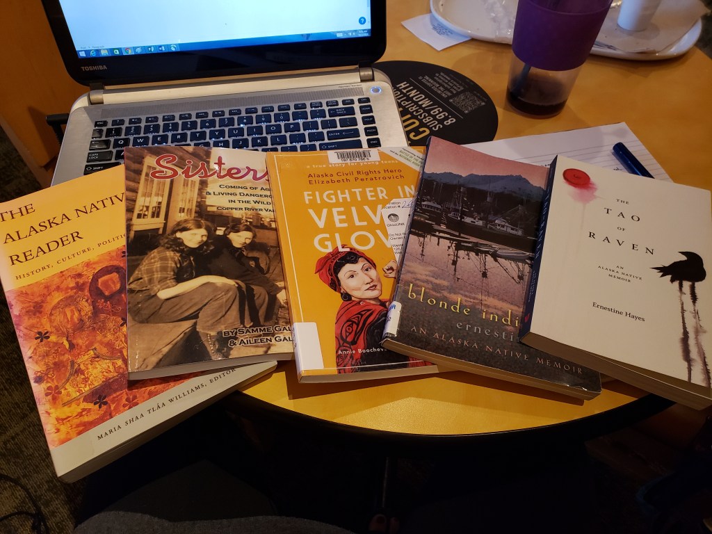 Next up will be Blond Indian and The Tao of Raven, both by Ernestine Hayes. I anticipate a struggle reading those because her style is very… literary. I prefer a direct style with limited airy metaphors. It sounds beautiful, but becomes dense and difficult to sort through. Perhaps I’m just being lazy, but when reading to learn, to research, I don’t want to read a paragraph 2-3 times to work out an author’s meaning. But I will read them both because they are well known Alaska Native memoirs.