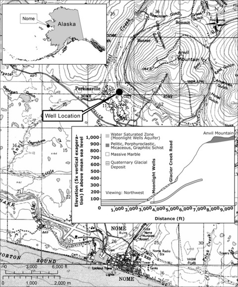 Moonlight Springs is located 2-3 miles north of Nome at the foot of Anvil Mountain. I know this from an evaluation that was done on the wells in 2006 by Nome city government. They include a topographical map, and a little history on the spring. Moonlight Springs and it’s marble aquifer has supplied Nome with water since the early 1900s. I am reasonably sure they used a gravity fed system, since I previously read FAR too much on how water was piped over the tundra for mining operations.